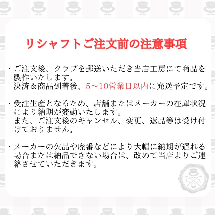 ※シャフト単体での販売はしておりません。クラブを当店に発送いただき制作後返送致します。