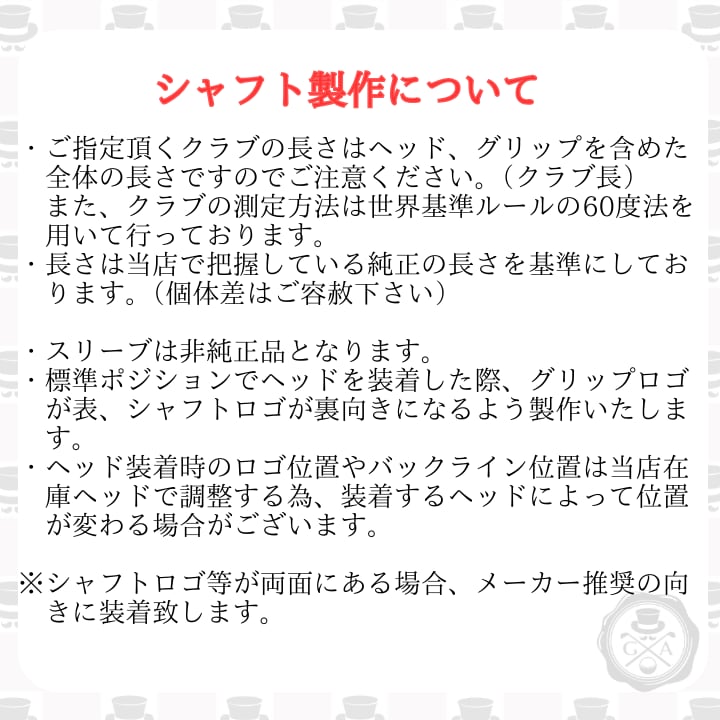 ※シャフト単体の長さで調整希望の方は、ご連絡ください。