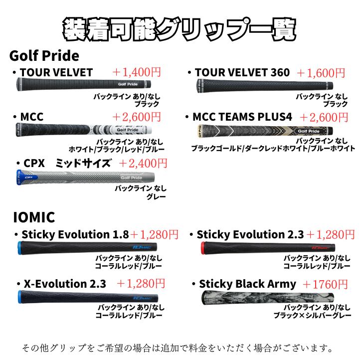 ※掲載されているシャフトやグリップ以外をご希望の場合はお気軽にご相談ください。